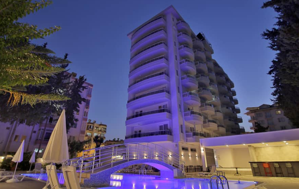 Položaj: Hotel je udaljen 120km od Antalijskog aerodroma i 100m od centra Alanje. Poslednji put renoviran 2019. godine. Preko puta hotela se nalazi aqua park Alanja.