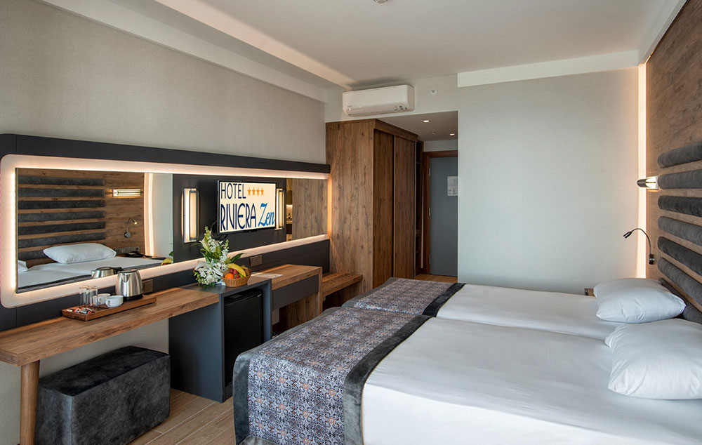 Hotelski sadržaj: Hotel ima recepciju, lift, lobi bar, glavni restoran, a la carte restoran, terasu, bazen, fitnes, wi fi. Gosti hotela Riviera Zen imaju ručak u hotelu Riviera Hotel & Spa koji je udaljen oko 70m.