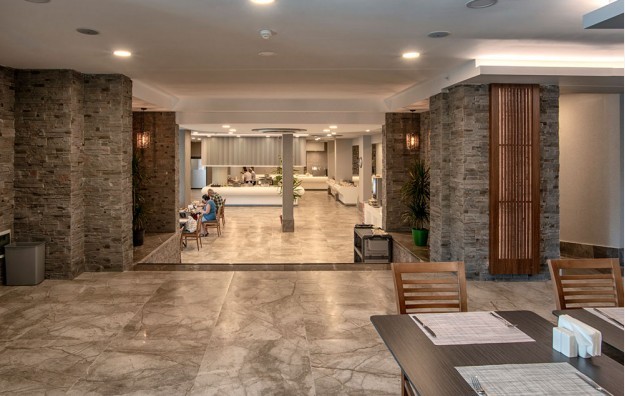 Hotelski sadržaj: Recepcija, glavni restoran, a la carte restoran, lobby bar, bar pored bazena, bar na plaži, bazen sa toboganima i odvojenim delom za decu, poslastičarnicu, mini klub za decu 4-12 god., mini disko, animaciju za decu i odrasle, noćnu animaciju, spa centar (teretana i sauna besplatno, ostalo uz doplatu), wi fi u lobiju je besplatan.