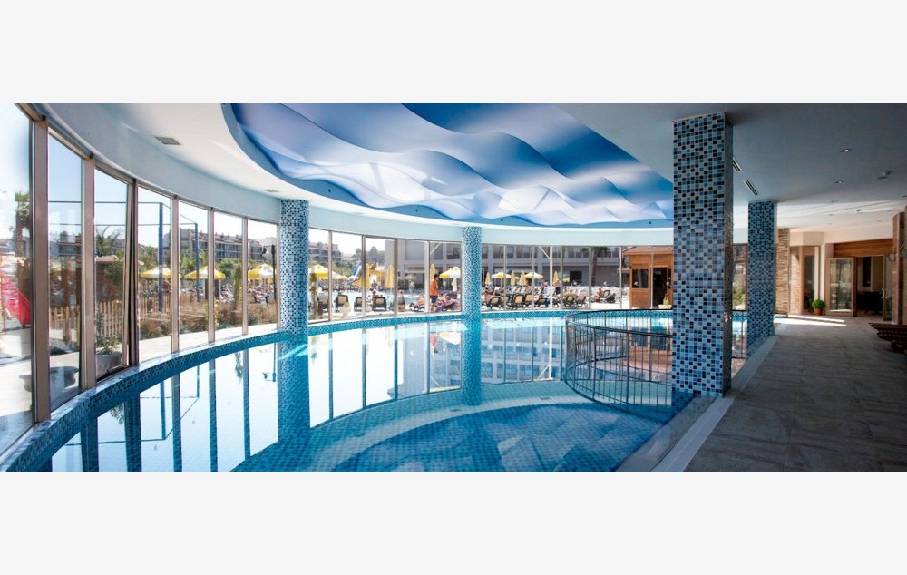 Hotelski sadržaj: Hotel poseduje glavni restoran, 2 a la carte restorana (turski i riblji-korišćenje jednog besplatno u toku boravka uz obaveznu rezervaciju), 2 bara, spoljašnji i unutrašnji bazen za odrasle i decu, večernju animaciju, dečiji klub 8za decu od 4-12 godina), dečija igraonica, mini disko, tursko kupatilo, sauna, masaže, fitness, aerobic, stoni tenis, bilijar, boćanje, pikado, wi fi.