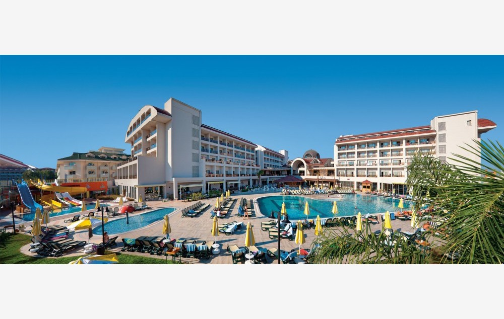 Hotelski sadržaj: Recepcija, 2 glavna restorana, 2 a la carte restorana, dijetalni meni, 13 barova, 2 unutrašnja i 5 spoljašnjih bazena, 5 dečijih bazena, 6 đakuzija, akva park sa 19 tobogana (10 dečijih), bioskopska sala, dnevne i večernje animacije, mini klub (za decu od 4-12 godina), teenage klub (za decu od 13-17 godina), mini disko, igraonica, aerobic u vodi, bocanje, pikado, stoni tenis, odbojka na pesku, teniski teren, košarka, tursko veče, hamam, sauna, parna soba, teretana, bilijar (uz doplatu), wi fi (u lobiju).