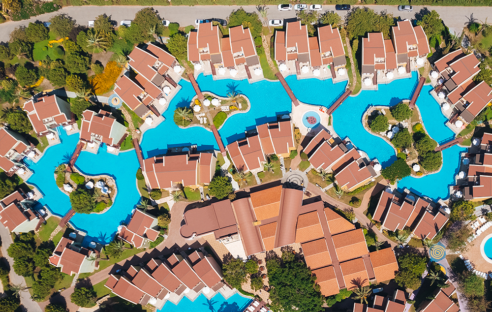 Smeštaj: Hotelski kompleks čine glavna sedmospratna zgrada i pet dvospratnih vila koje imaju ukupno 358 soba. U glavnoj zgradi se nalaze standardne sobe sa pogledom na kopno ili more i porodične sobe, dok se u vilama nalaze vila standardne sobe i vila porodične sobe. Hotel poseduje i sobe za osobe sa posebnim potrebama.