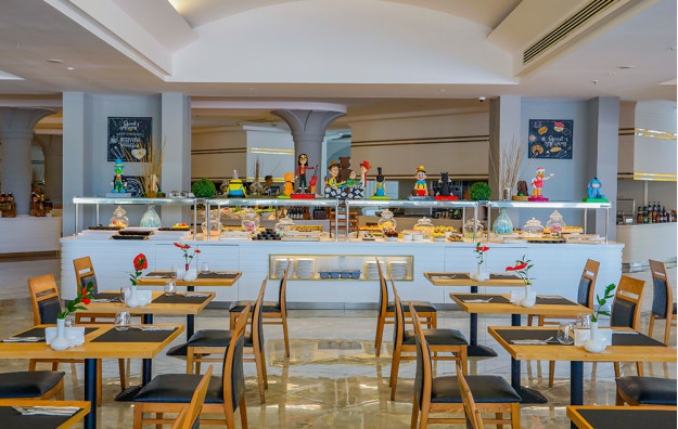 Hotelski sadržaj: Dva glavna restorana, tri a’la carte restorana (uz rezervaciju), 10 barova, 5 konferencijskih sala, bioskopska sala, 2 unutrašnja bazena, 7 spoljašnjih bazena, akva park sa 14 tobogana, teretana, aerobik, akvabik, košarka, odbojka na pesku, odbojka, teniski tereni, pikado, boćanje, badminton, diskoteka, muzika uživo, dnevna i večernja animacija, 4 dečijia bazena, 2 dečija kluba (mini 4-8 i junior klub 13-17 godina), luna park, dečiji meni, dečije igralište, spa centar (hamam i sauna - besplatno). Wifi je dostupan na celoj teritoriji hotela.