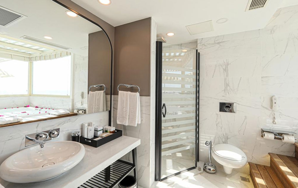 Sky Suite (59m2). Sadrži francusli ležaj i sofu za sedenje, terasu sa ležaljkama i đakuzi. Maksimalno mogu da borave dve odrasle osobe.