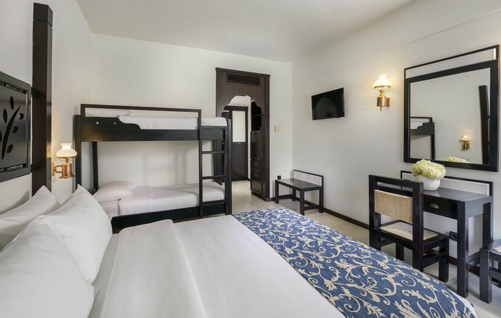 Two Bedroom Family Suite-40 m2, sa dve međusobno povezane sobe, jedna sa francuskim ili dva odvojena kreveta i jedna sa krevetom za jednu osobu i kaučem na razvlačenje, sopstveno kupatilo sa tušem i namešteni balkon sa pogledom na baštu ili šumu ili pogled na more.