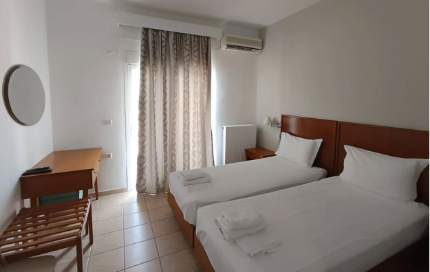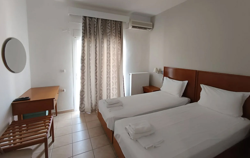 LOKACIJA:Stavros Beach Hotel 3* je smešten u srcu Stavrosa, popularnog letovališta na severu Grčke. Nalazi se na samo 80 metara od plaže.Stavros Beach Hotel se sastoji od dve zgrade, zgrade A (renovirana zdraga) i B, koje se prostiru oko bazena hotela. Renoviran bazen 2022. godine. Zgrada A poseduje superior dvokrevetne-trokrevetne sobe, porodične sobe u prizemlju, junior apartmane sa pogledom na bazen. Standardne sobe hotela su sve u zgradi B.Sve sobe su opremljene TV-om, frižiderom i A/C(klima uključena u cenu), balkon( neke sa pogledom na bazen,a neke sa pogledom na vrt), Wi-fi