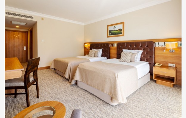 Senior sobe pogled golf (35-45m2). Sadrže francuski ili dva odvojena ležaja. Dodatni ležaj je sofa ili krevet na rasklapanje. Maksimalno mogu da borave dve odrasle osobe i dvoje dece do 10 godina.