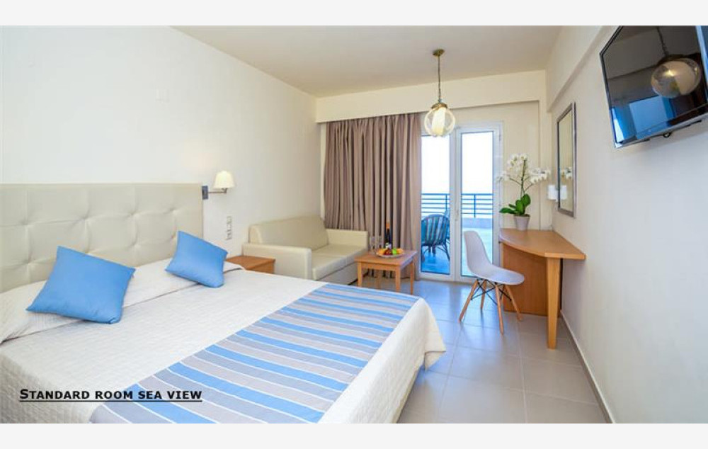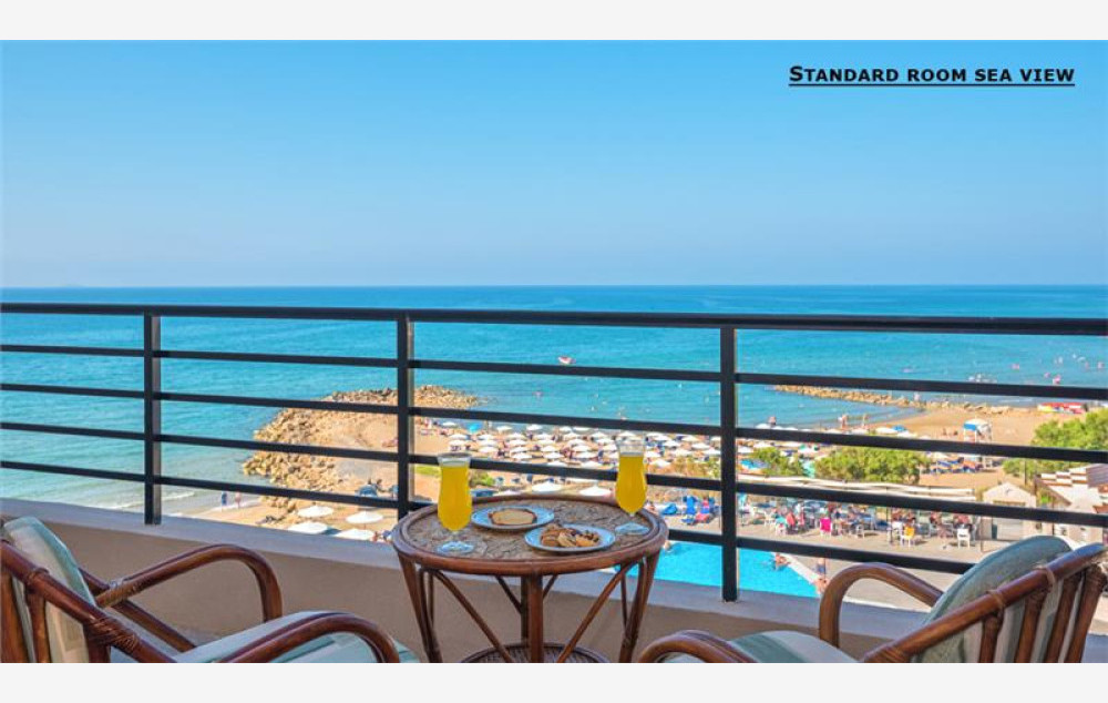 Hotel poseduje 157 soba koje su vrlo komforne i elegantno opremljene. Gostima su na raspolaganju standardne sobe sa pogledom na baštu i sobe sa pogledom na more. Sve sobe u hotelu su po svojoj osnovnoj strukturi dvokrevetne dok ostali ležajevi mogu biti pomoćni. Sobe sadrže: kupatilo sa tušem, fen, set za kafu/čaj, telefon, mini frižider, sef uz doplatu, individualni klima uređaj, SAT TV, balkon. Sobe su opremljene sa francuskom ležajem ili dva odvojena i sofom koja se razvlači u krevet za treću osobu ili dete. Krevetac za bebe je dostupan besplatno, uz obaveznu najavu prilikom rezervacije.
