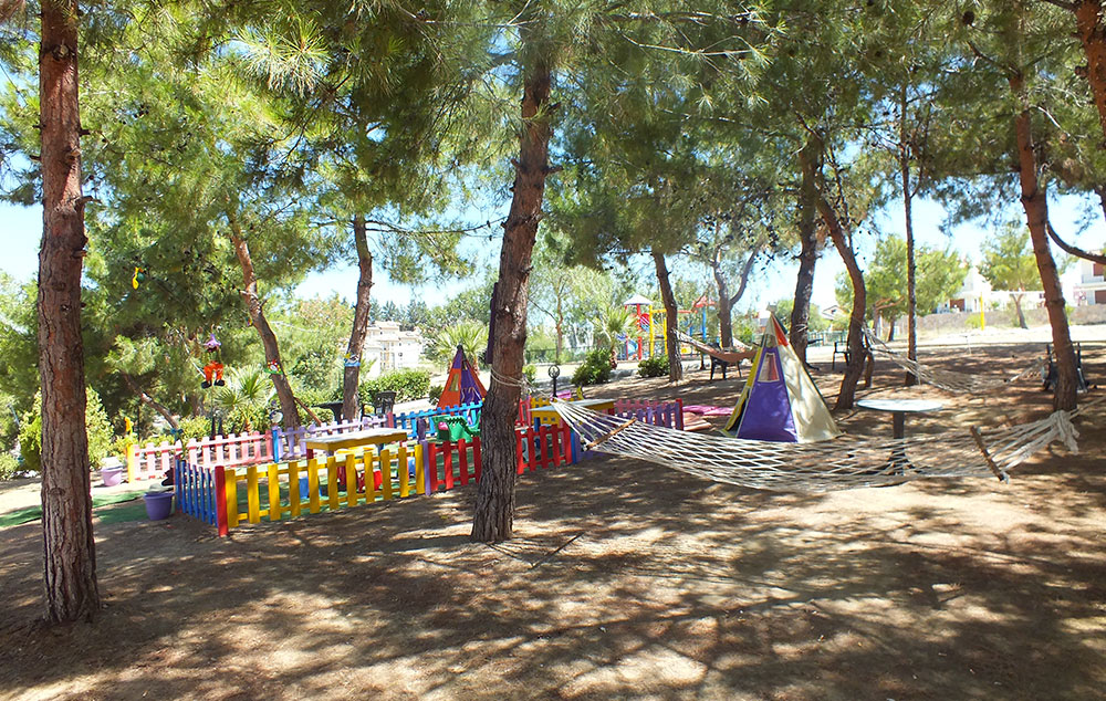 Položaj: nalazi se na uzvišenju sa kojeg se pruža predivan pogled na Ladies beach plažu i ostrvo Samos. Objekat je udaljen od Ladioes beach plaže 250m. Od centra grada je udaljen oko 2,5km. Stanica dolmusa - lokalnih mini buseva je udaljena od objekta svega 100m. U okolini hotela se nalazi dosta barova, restorana, marketa. Hotel se nalazi na 125km od aerodroma u Bodrumu.