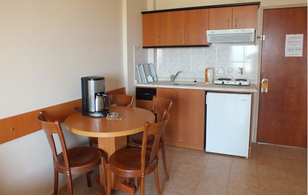 Svi apartmani imaju dnevni boravak sa trpezarijom i sa kaučem na razvlačenje, odvojenu prostoriju za spavanje, kompletno opremljenu kuhinju - frižider, ketler, šporet, toster, kafemat, kupatilo sa tušem /wc, fen za kosu, SAT TV, klimu (uz doplatu, na licu mesta), sef (uz doplatu, na licu mesta), telefon, balkon. Maksimalno borave 4 odrasle osobe.