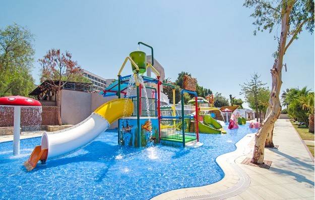 Hotelski sadržaj: recepcija, lobi, 3 restorana, 6 barova, otvoreni bazeni sa odeljkom za decu-ležaljke i suncobrani besplatni za goste hotela, 3 a la carte restorana, prodavnice, mini-klub (starost od 04-12 godina), dečije igralište i dečiji akva-park, tenis, stoni tenis, badminton, odbojka, košarka, pikado, vaterpolo, kanu, pedalino, aerobik, gimnastika, boćanje, animacija (dnevna i večernja), turski hamam, sauna, parno kupatilo, masaže, Spa deo, frizer, perionica, bioskop, prodavnice, vodeni sportovi, šah, disco, wifi.