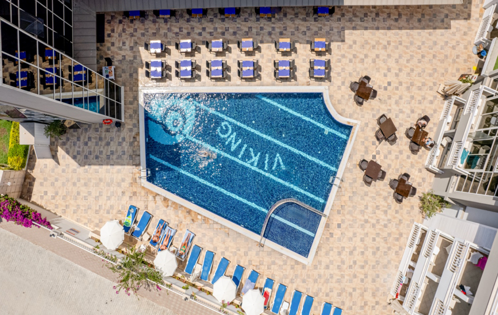 Hotelski sadržaj: Recepcija, lift, 2 restorana, lobby bar, bar pored bazena, dva otvorena bazena sa toboganima i odvojenim delom za decu, frizer, mini market, wi fi beplatno u zajedničkim prostorijama.