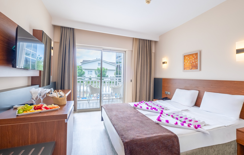 Hotelski sadržaj: Recepcija, glavni restoran, a la carte restoran, bar pored bazena, bar na plaži, bazen za odrasle, dečiji bazen, dva tobogana, dečije igralište, dnevnu animaciju, večernji mini disko, fitness, tursko kupatilo, saunu, stoni tenis, bilijar, wi fi se doplaćuje.