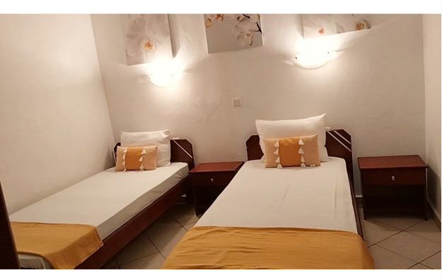 Opis: Vila poseduje dvokrevetna i dvokrevetna studija sa pomoćnim ležajem, smeštena u prizemlju i na prvom spratu. Prostor ispred studija u prizemlju je u funkciji zajedničke terase, a svaki ima svoju garnituru za sedenje. Studija na spratu imaju zajedničke-prolazne terase. Svaki studio poseduje mini čajnu kuhinju, kupatilo/wc, peškire, WiFi internet, TV, klima uređaj (uz doplatu na licu mesta od 6e dnevno). Na oko 200 metara se nalaze prodavnice, pekara, apoteka