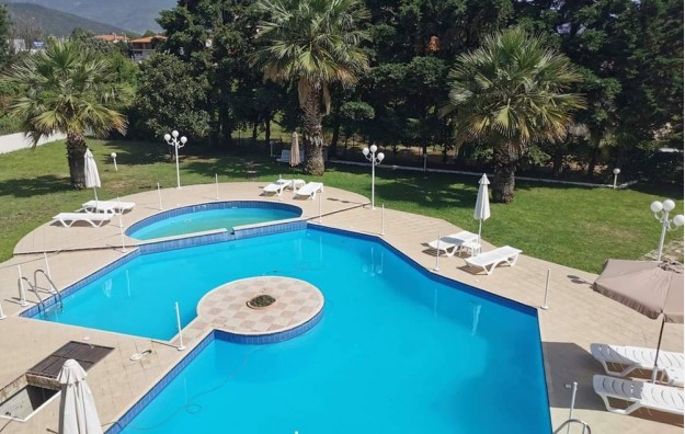 Opis: Apart/hotel Maria raspolaže trokrevetnim i četvorokrevetnim studijima koji se nalaze na prvom i drugom spratu. Smeštajne jedinice su moderno opremljene i imaju kuhinjski deo, TV, kupatilo, terasu i klima uređaj (uračunat u cenu), gledaju na bazen i more. Vila poseduje WiFi, bazen sa odvojenim delom za decu i ležaljkama oko bazena, recepciju.
