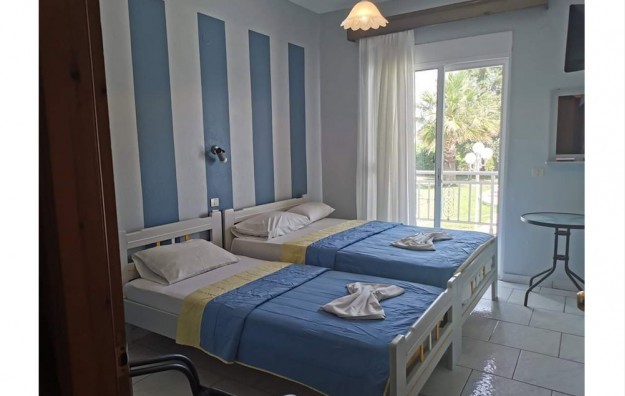 Opis: Vila Tasos u ponudi ima dvokrevetne, trokrevetne i četvorokrevetne studije na visokom prizemlju i drugom spratu. Sve smeštajne jedinice poseduju opremljen kuhinjski deo, kupatilo, terasu, TV, klima uređaj (uz doplatu na licu mesta od 7€ dnevno).