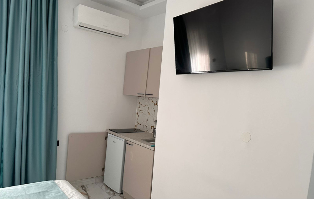 • Studio je smeštajna jedinica koja se sastoji od kupatila (tuš/WC) i jedne prostorije u kojoj se nalazi naznačeni broj ležaja i kuhinjski deo koji je opremljen rešoom, frižiderom i osnovnim posuđem