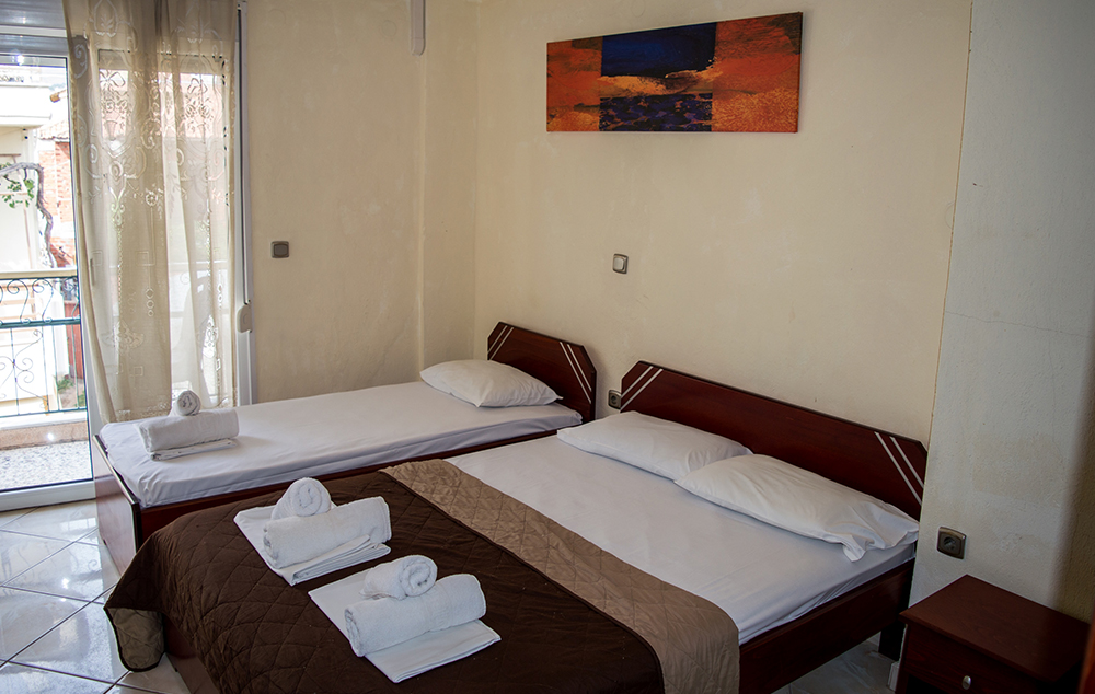 Lokacija: Vila IO se nalazi u samom centru Potosa, 100m od plaže, na početku pešačke zone, u kojoj su pekare, prodavnice, super marketi, taverne i restorani.
