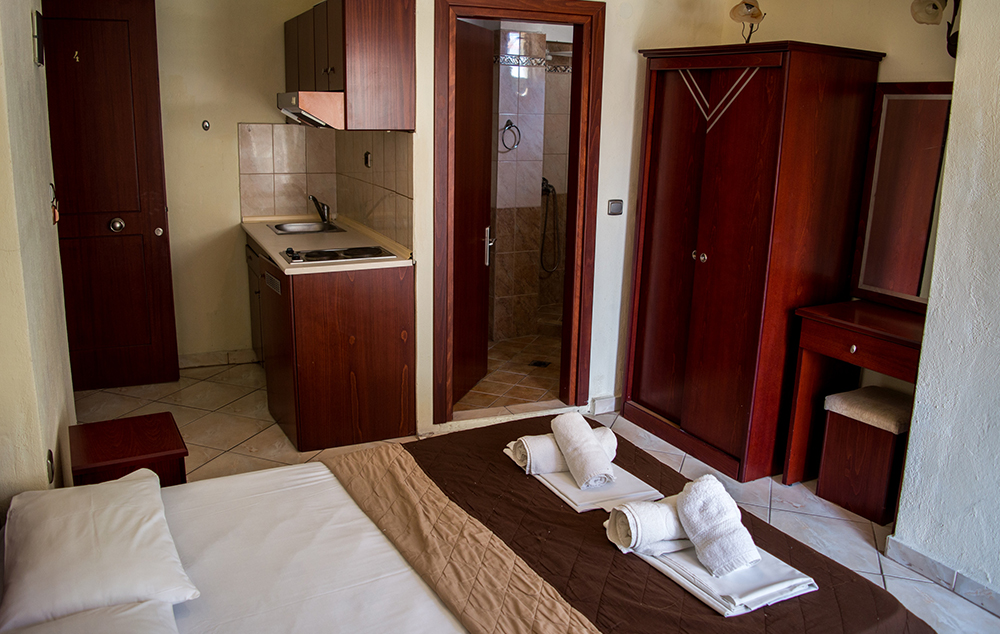 U našoj ponudi su dvokrevetna I trokrevetna studija u vrtu, desno od bazena, u spuštenom prizemlju, sa uslugom dnevnog čišćenja studija. U neposredoj blizini hotela se nalazi javni, besplatni parking.