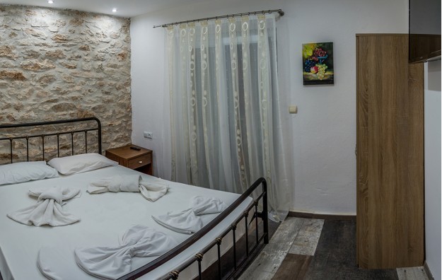 Opis: Vila poseduje dvokrevetna i dvokrevetna studija sa pomoćnim ležajem, smeštena u prizemlju i na prvom spratu. Prostor ispred studija u prizemlju je u funkciji zajedničke terase, a svaki ima svoju garnituru za sedenje. Studija na spratu imaju zajedničke-prolazne terase. Svaki studio poseduje mini čajnu kuhinju, kupatilo/wc, peškire, WiFi internet, TV, klima uređaj (uz doplatu na licu mesta od 6e dnevno). Na oko 200 metara se nalaze prodavnice, pekara, apoteka