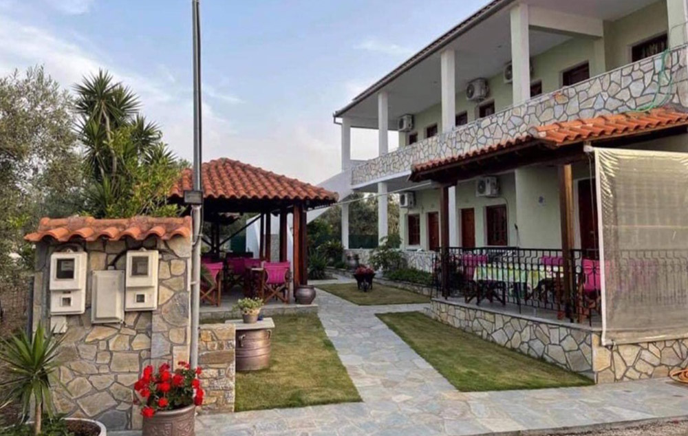 Opis: Poseduje studija namenjena za smeštaj dve do četiri osobe, smeštena u prizemlju i na prvom spratu. Svaka od smeštajnih jedinica ima po dva francuska ležaja po grckim standardima (širine 1.20 ), opremljen kuhinjski deo, kupatilo/wc, terasu, TV,WIFI, A/C, čije se korišćenje naplaćuje 6€ po danu.