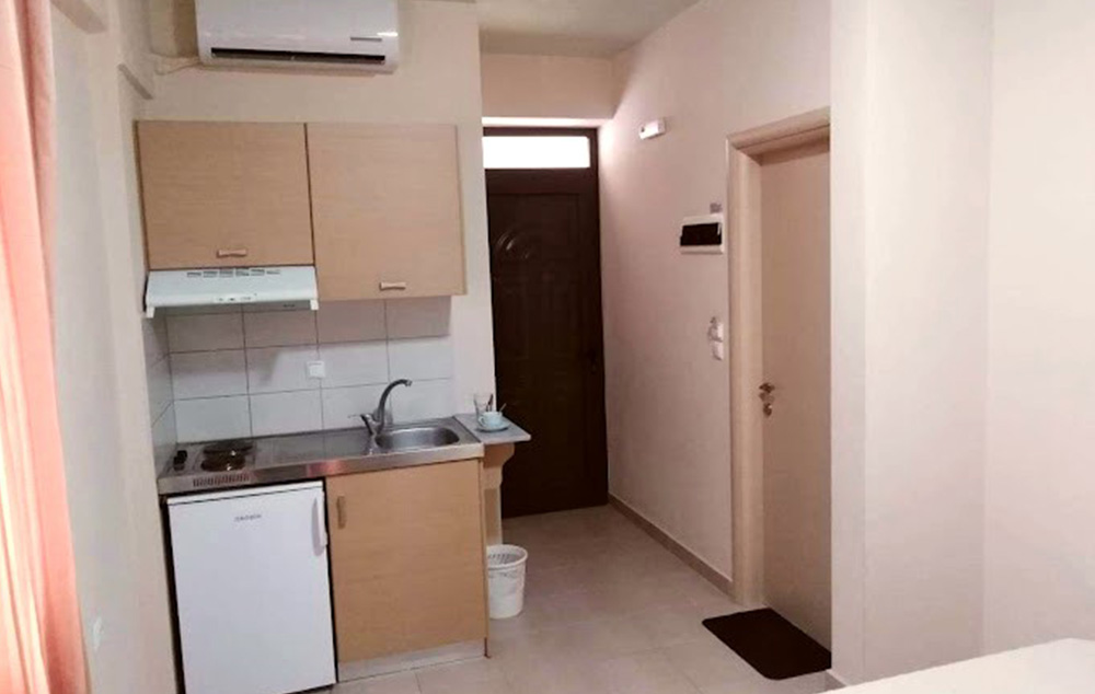 Opis: Vila se sastoji od studija na izdignutom prizemlju i prvom spratu, sa pogledom na more ili baštu. Studiji su opremljeni TV – om, wi - fi Internetom i klima uredjajem (uz doplatu na licu mesta (opcija, minimum na 5 noći), 5 eur dnevno po studiju).Dvokrevetni i trokrevetni + 1 studio na izdignutom prizemlju ima francuski ležaj i prošireni (120 cm) i nešto je veće kvadrature.Mali dvokrevetni, trokrevetni i četvorokrevetni studiji na izdignutom prizemlju (1/2 STD PROMO, 1/3 STD PROMO, 1/4 STD PROMO) su sa francuskim ležajem i krevetima na sprat. U njima mogu boraviti dve do četiri osobe (pogledati cenovnik). Pored malog kupatila, imaju kuhinjsku nišu, mali orman i lepu terasu sa pogledom na more. Veličina studija je cca 12 - 15 kvm + terasa.Dvokrevetni i trokrevetni + 1 studio na izdignutom prizemlju (1/2 STD PROMO, 1/3 STD PROMO, 1/3+1 STD PROMO) ima francuski ležaj i prošireni ležaj-francuski ležaj po grčkim standardima (120 cm) i nešto je veće kvadrature.U studije u prizemlju se ulazi kroz terasu i nemaju prozor, već samo uski vertikalni svetlarnik pored (u visini) vrata i mali u vratima. Boj osoba koji može boraviti u studijima na prizemlju je ograničen na dvoje odraslih i dvoje dece do 12 godina.Dvokrevetni+1 studiji (1/2 STD PM, 1/2+1 STD PM) se nalaze na prvom spratu i pored kuhinjskog dela sadrže standardni ležaj i prošireni ležaj-francuski ležaj po grčkim standardima (120 cm), kupatilo i terasu sa garniturom za sedenje i pogledom na more.Trokrevetni+1 studiji se nalaze na prvom spratu (1/3 STD PM, 1/3+1 STD PM) i pored kuhinjskog dela sadrže francuski ležaj i prošireni ležaj-francuski ležaj po grčkim standardima (120 cm), kupatilo i terasu sa garniturom za sedenje i pogledom na more.Dvokrevetni, trokrevetni i četvorokrevetni studiji na prvom spratu (1/2 STD PB, 1/3 STD PB, 1/4 STD PB) sadže kuhinjski deo, deo sa francuskim i jedna ili dva standardna ležaja, kupatilo i terasu sa garniturom za sedenje i pogledom na baštu. Veličina studija je cca 18 - 20 kvm + terasa.Trokrevetni i četvorokrevetni studiji na prvom spratu (1/3 STD PM, 1/4 STD PM) imaju francuski i krevete na sprat i terasu sa garniturom za sedenje sa pogledom na more. Veličina studija je cca 21 - 23kvm + terasa. Vila Eftihia je B kategorije, nema peškire i ima mogućnost parkinga na ulici pored vile.