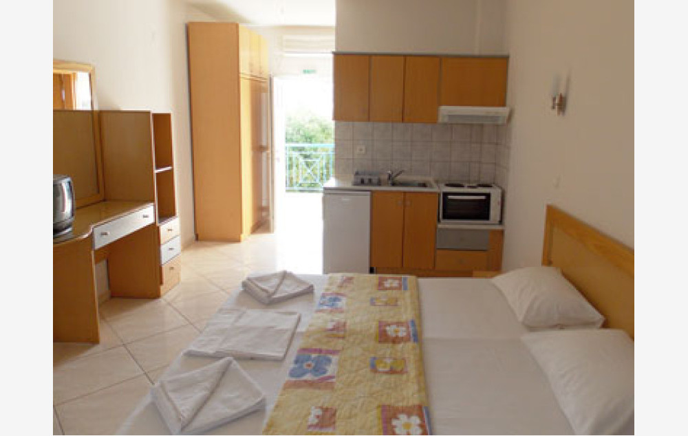 • Studio je smeštajna jedinica koja se sastoji od kupatila (tuš/WC) i jedne prostorije u kojoj se nalazi naznačeni broj ležaja i kuhinjski deo koji je opremljen rešoom, frižiderom i osnovnim posuđem