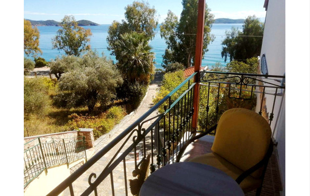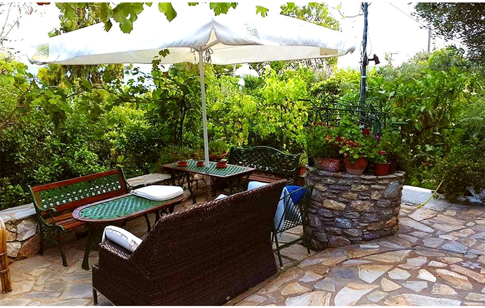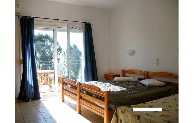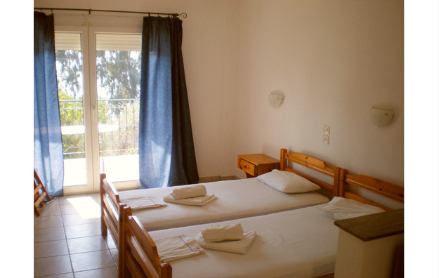 Vila Maria se nalazi u lepom mediteranskom vrtu, na idealnoj lokaciji, oko 800 metara od centra grada, na svega oko 170 metara od prelepe i jedne od najpoznatijih plaža na ostrvu, plaže Megali Amos (Velika plaža). Dvokrevetni i trokrevetni studiji vile Maria su smešteni na prvom spratu, a četvorokrevetni apartman na malo izdignutom prizemlju i svi su sa pogledom na dvorište. Opremljeni su klima uredjajem (uz doplatu na licu mesta (opcija), 8 eura dnevno po studiju/apartmanu), wi - fi Internetom i TV - om. Dvokrevetni i trokrevetni studiji sadrže opremljenu malu kuhinju sa delom za spavanje sa dva, odnosno tri standardna ležaja, kupatilo i lepu terasu sa garniturom za sedenje. Veličina studija je cca 18 – 20 kvm + terasa. Četvorokrevetni apartman se sastoji dnevnog boravka u kojem se nalazi dobro opremljena kuhinja (veliki frižider sa zamrzivačem, šporet sa rernom...) trpezarijski sto, ugaona sofa na kojoj može spavati dvoje dece do 12 godina, spavaće sobe sa francuskim ležajem, kupatila i velike terase sa garniturom za sedenje i pogledom na vrt. Veličina apartmana je cca 33 kvm + terase. Vila Maria je B kategorije, ima peškire i javni besplatni parking preko puta vile. Najbliži mini market je ispred vile, a autobuska stanica u neposrednoj blizini. Vila je idealna za mlade zbog blizine grada, ali i za porodice, jer je plaža u neposrednoj blizini, ima zidani roštilj i dvoršte koje je na raspolaganju deci.