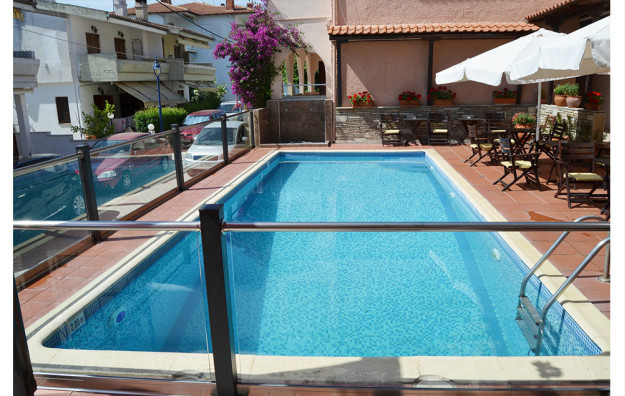 Opis:Sastoji se od glavne zgrade sa recepcijom, lobijem sa kaminom i barom i nekoliko bungalova sa po četiri do šest studija. Bungalovi su smešteni u prelepom, velikom, mediteranskom vrtu sa puno zelenila i cveća u koji se savršeno uklapaju veliki i dečiji bazen, kao i igralište za decu. Zahvaljujući prelepom ambijentu i odličnoj lokaciji u čijoj neposrednoj blizini su prodavnica i pekara, objekat je idealan za porodice sa jednim detetom, kao i parove koji će pronaći tihi kutak u uzavrelom Pefkohoriju.