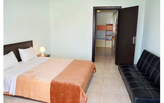 Dvokrevetni + 2 studiji (1/2+2 STD), sadrže opremljenu kuhinju, deo za spavanje sa francuskim ležajem, sofom 180 x 75 cm i ležajem na izvlačenje (190 x 75 cm, skoro kao standardni) i kupatilo. Veličina studija je cca 25 kvm + terasa.