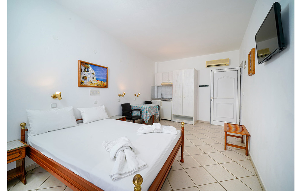 U našoj ponudi su dvokrevetna I trokrevetna studija u vrtu, desno od bazena, u spuštenom prizemlju, sa uslugom dnevnog čišćenja studija. U neposredoj blizini hotela se nalazi javni, besplatni parking.
