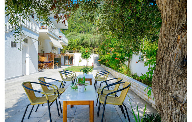 Vila Helios Garden se nalazi u Limenasu, na domak centra letovališta (oko 350 metara) i na oko 900 metara od gradske plaže. Pored odlične lokacije i mirnog okruženja, vila ima lep, veliki bazen (bez dela za decu) sa ležaljkama i suncobranima (uračunati u cenu), malu recepciju sa lobijem, malo igralište za decu, zidani roštilj koji je na raspolaganju svim gostima i dva parkinga. Sabra u vili raspolaže studijima i apartmanima na prvom spratu, sa pogledom na bazen ili mirnu (slepu) ulicu. Dvokrevetni studiji sadrže kuhinjski deo, francuski ležaj, kupatilo i terasu sa garniturom za sedenje. Veličina studija je cca 16 - 18 kvm + terasa. Četvorokrevetni apartman sa dva kupatila, dva klima uredjaja i dva frižidera se sastoji od ulazne spavaće sobe u kojoj se nalazi TV i klima uredjaj, sobe iz koje se izlazi na terasu i u kojoj je i kuhinjski deo i terase sa garniturom za sedenje. Veličina apartmana je cca 32 kvm + terasa. Svi studiji i apartmani su opremljeni francuskim ležajevima, plazma TV – om wi – fi Internetom i klima uredjajem (uz doplatu na licu mesta, (opcija), 6 eur dnevno po studiju (std 1/2), 10 eur dnevno po apartmanu (apt 1/4)). Vila Helios Garden je B kategorije i ima sopstveni parking. Preporučujemo porodicama sa jednim ili dvoje dece koje vole miran i opuštajući odmor i druženje pored bazena, uz roštilj.