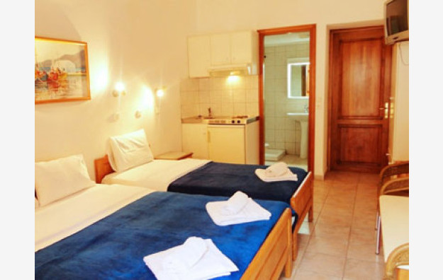 Opis: Vila poseduje dvokrevetna i dvokrevetna studija sa pomoćnim ležajem, smeštena u prizemlju i na prvom spratu. Prostor ispred studija u prizemlju je u funkciji zajedničke terase, a svaki ima svoju garnituru za sedenje. Studija na spratu imaju zajedničke-prolazne terase. Svaki studio poseduje mini čajnu kuhinju, kupatilo/wc, peškire, WiFi internet, TV, klima uređaj (uz doplatu na licu mesta od 6e dnevno). Na oko 200 metara se nalaze prodavnice, pekara, apoteka