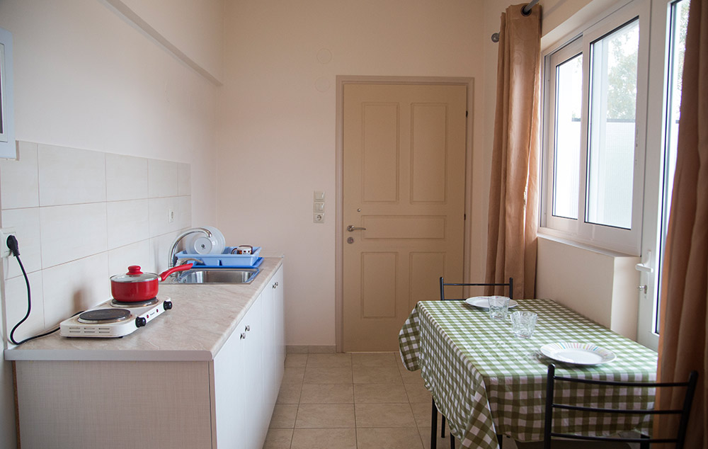 Opis: Vila poseduje dvokrevetne i trokrevetne studije koji se nalaze na prvom i drugom spratu. Svaki od njih ima opremljen kuhinjski deo, kupatilo/wc, terasu, TV, WiFi internet i klima uređaj (uz doplatu na licu mesta od 5€ dnevno).