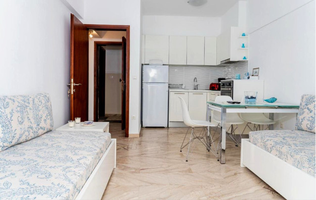 Opis: Četvorokrevetni apartman sadrži dobro opremljenu kuhinju sa trpezarijskim stolom (veliki frižider sa zamrzivačem, šporet sa rernom, mašina za pranje sudova...), a u nastavku se nalazi deo sa dnevnim boravkom gde se nalaze sofe - dva ležaja nešto manjih dimenzija od standardnih, na kojima mogu spavati deca do 12 godina (ili do 15 na upit), spavaću sobu sa dva standardna ležaja i plafonskim ventilatorom, kupatilo sa kadom i veliku natkrivene terasu sa garniturom za sedenje. Veličina apartmana je cca 35 kvm + terasa. Opremljen je sa wi – fi Internetom, TV-om i mrežom za komarce, klima uredjajem (uključeni u cenu) u dnevnom boravku, dok spavaća soba ima plafonski ventilator. Četvorokrevetni dupleks apartman sadrži dobro opremljenu kuhinju sa trpezarijskim stolom i sofom (veliki frižider sa zamrzivačem, šporet sa rernom...), dve spavaće sobe sa po dva standardna ležaja, kupatila sa kadom i velike natkrivene dve terase sa garniturom za sedenje. Veličina apartmana je cca 40 kvm + terasa. Opremljen je sa wi – fi Internetom, TV-om i mrežom za komarce, dva klima uredjaja (uključeni u cenu), jedan u dnevnom boravku i drugi u spavacoj sobi, dok druga spavaća soba ima plafonski ventilator. Vila Thallasa Beach je A kategorije, ima peškire, a parkiranje je moguće na ulici pored vile.