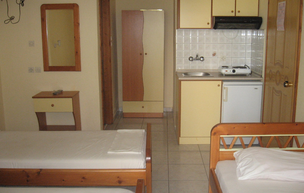 Opis: Vila Tasos u ponudi ima dvokrevetne, trokrevetne i četvorokrevetne studije na visokom prizemlju i drugom spratu. Sve smeštajne jedinice poseduju opremljen kuhinjski deo, kupatilo, terasu, TV, klima uređaj (uz doplatu na licu mesta od 7€ dnevno).