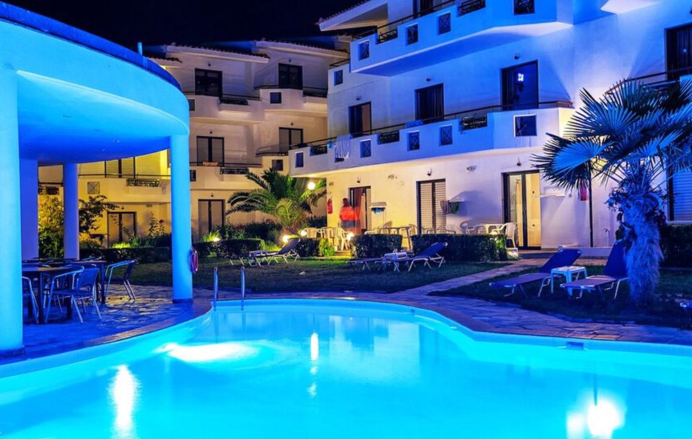 SADRŽAJ: recepcija, parking ( javni u blizini hotela), rent a car, WI FI uz doplatu, ležaljke na plaži, peškiri uz depozit, bar, dečiji zabavni park, otvoreni bazen, restoran, sportovi na vodi uz doplatu, večernja animacija,
