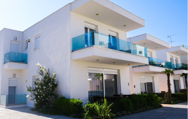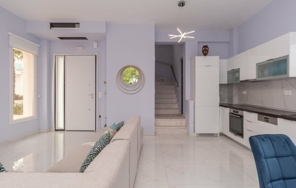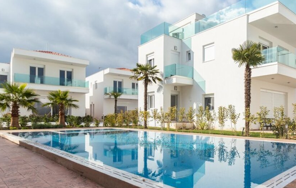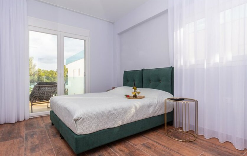 3 - bedroom villa- 100 m², prostire se na tri etaže (2 sprata) s 2 spavaće sobe i 2 kupatila na spratu i 1 spavaćom sobom s kupatilom na srednjoj etaži, udobnim dnevnim boravkom i prostranom trpezarijom s kuhinjom u prizemlju, s direktnim pristupom nameštenoj verandi s prekrasnim pogledom na zalazak sunca.