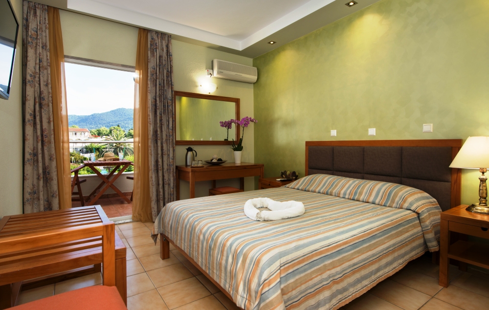 Standard room – oko 20m2 sa pogledom na baštu, dekorisana je sa svetlim bojama. Opremejne su sa francuskim. Namenjena za 2-3 osobe
