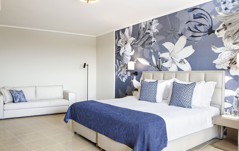 Deluxe Room Sea View - Apartman površine 25 m², smešten u glavnoj zgradi, ima bračni ili dva odvojena kreveta i kauč na razvlačenje za treću osobu (bebe dele krevet s roditeljima), sopstveno kupatilo s tušem i namešten balkon s pogledom na more.