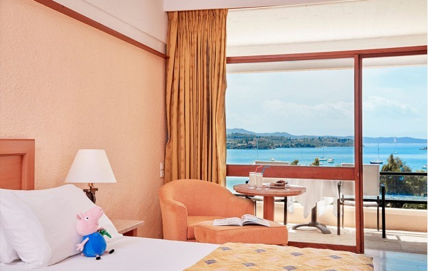 Superior Room Sea View-24 m2, potpuno renoviran, nalazi se na gornjim spratovima, sa pogledom na jedinstveni zaliv Porto Heli, ima bračni ili dva odvojena ležaja i pomoćni ležaj za 3. osobu, pogodan za 2-3 osobe.