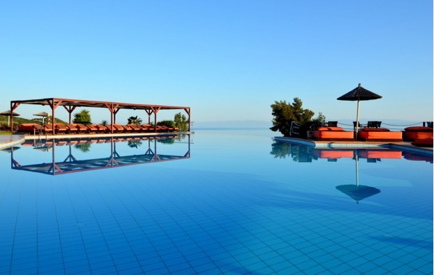 LOKACIJA: Alia Palace je hotel moderne arhitekture i izvanrednih prostornih rešenja. Nalazi se na uzvišenju iznad Pefkohorija. Pogled sa prirodne terase hotela na more i panoramu grada je veličanstven i nikoga ne ostavlja ravnodušnim. Hotel prihvata samo odrasle osobe (iznad 16 godina).