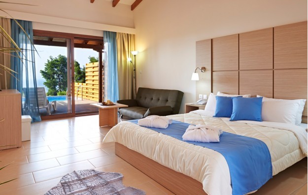 Junior Suite Private Pool - 30 m2, prizemlje, besplatni privatni parking, terasa, jedan privatni bazen po sobi, s pogledom na kopno/bočni pogled na more iz svake sobe. Dizajnirano za 2-4 osobe (bračni krevet s kaučem na razvlačenje).