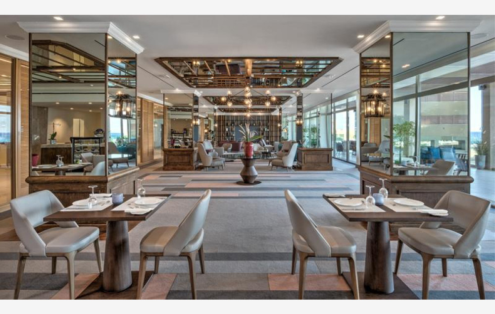 Gostima su na raspolaganju recepcija, lobi, glavni restoran, azijski, italijanski restoran, Enalia tradicionalni restoran pored obale, kao i grčka taverna, nekoliko barova (koktel bar, barovi kod bazena, snek bar, bar kod aqua parka…), WI FI internet konekcija, menjačnica, rent a car usluge (uz doplatu), parking, autobuska stanica na 100m od hotela, Aqua park, 4 bazena uključujući i dečiji, tereni za odbojku, teniski teren (uz doplatu), animacija za odrasle i decu, tri dečija kluba za sve uzraste do 12 godina, igraonica, usluge čuvanja dece (uz doplatu), Wellness & Spa centar uz doplatu, teretana, tematske večeri. Kod glavnog bazena koji je dug 140 metara kao i drugim delovima hotela postoji deo posebno za porodice “Family zone”. Takođe kod glavnog bazena i u restoranu postoji deo samo za odrasle “Adults zone”.