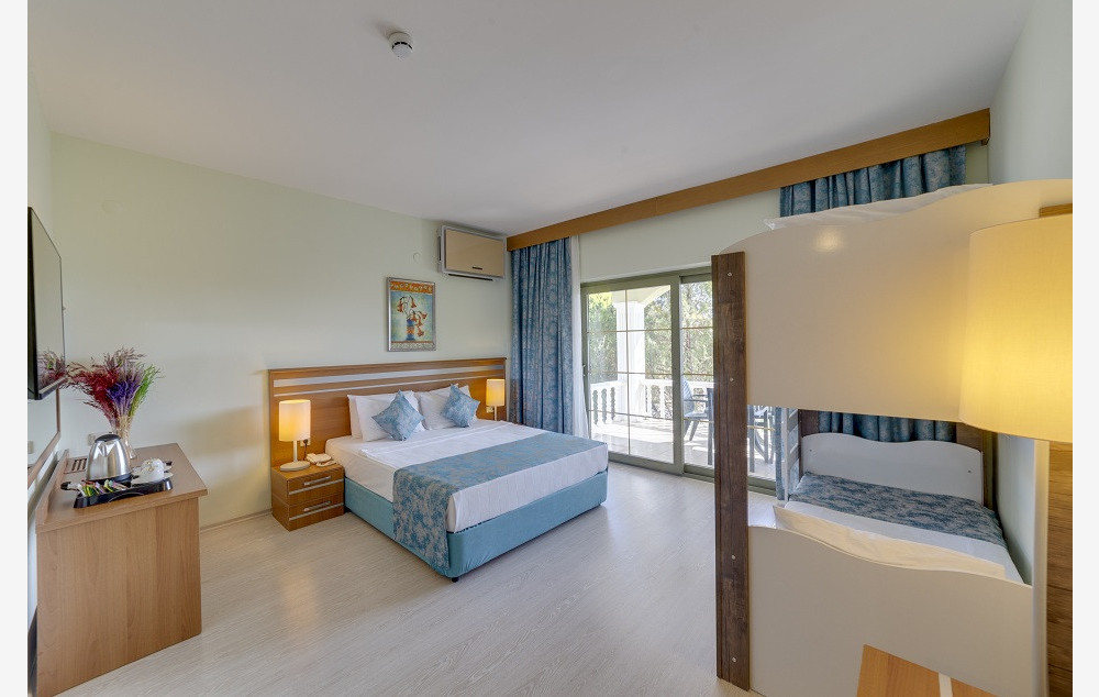 Sobe: Hotelske standard sobe se nalaze u hotelskoj zgradi koja je udaljenija od plaže i one su veličine 16-23m²: sve osbe imaju kupatilo (Tuš WC i fen za sušenje kose), klima uredjaj, mini-bar (dnevno dopunjavanje vodom, ostali napitci uz doplatu), aparat za pripremu kafe / čaja, sef (besplatno), SAT TV, francuski balkon, wifi. Maksimalno borave 2 odrasle osobe i 2 dece do 12 i 3 godine. Club standard sobe su veličine 22m² (nešto konfornije od hotelskih soba), iste su opremljenosti kao i hotelske sobe, samo što imaju balkon. Maksimalno borave 2 odrasle osobe i 2 dece od 12 i 3 godine. Club large sobe sa krevetima na sprat se sastoje iz jedne prostorije veličine oko 26m², iste su opremljenosti kao i club standardne sobe. Maksimalno borave 3 odrasle osobe i 1 dete do 12 godina. Club family sobe su veličine oko 30m², sastoje se iz dve prostorije, iste su opremljenosti kao i club standard sobe. Maksimalno borave 3 odrasle osobe i 1 dete do 12 godina.