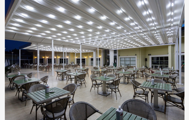 Sadržaj: recepcija, lobi, glavni restoran, 3 a la carte restorana - italijanski, riblji i nternacionalni), snack resotan, poslastičarnica, 5 barova, 2 otvorena bazena, 1 zatvoreni bazen, dečiji bazen, 3 tobogana, mini club za decu (4-12 godina), prostorija sa igricama, mini disco, tursko kupatilo, sauna, masaža, frizer, fitness club, gimnastika, zumba, basket, odbojka, stoni tenis, boćanje, usluga pranja i peglasnja veša, doktor na poziv, večernja animacija, wifi.