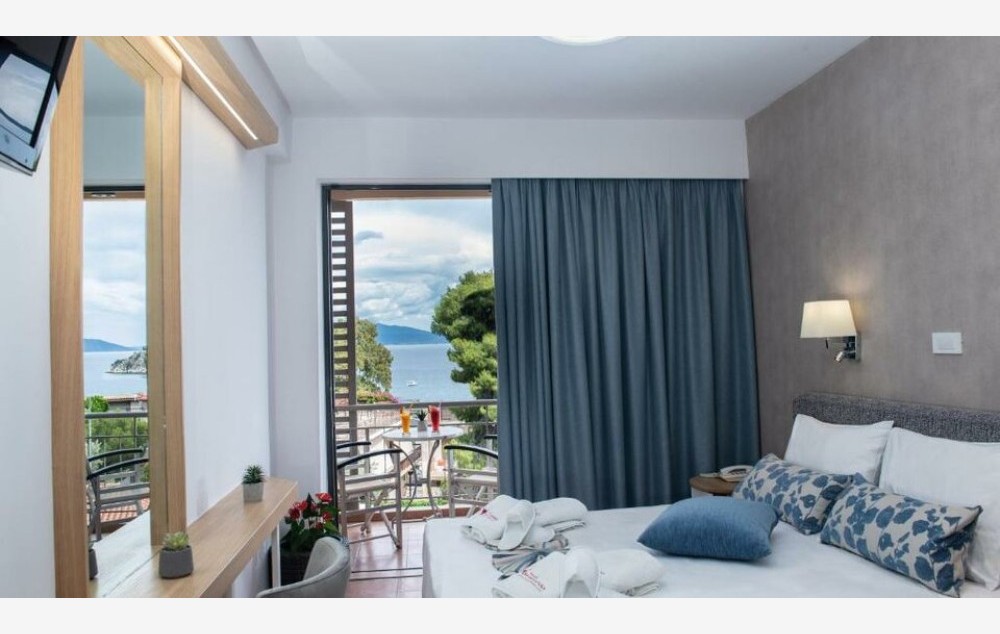 Standard Room Sea View - oko 18m2 sa pogledom na more, opremnjena je sa francuskim  ili dva singl ležaja. Namenjena za 2-3 osobe.