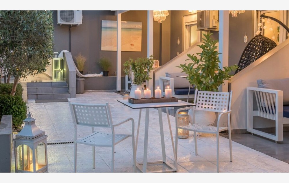 Junior Suite Garden View-Junior Suite od 35 m² ima privatnu baštu, gde su naši cenjeni gosti dobrodošli da se opuste. Uživajte u besplatnom voću i vinu po dolasku i maksimalno iskoristite svoj boravak na Halkidikiju!