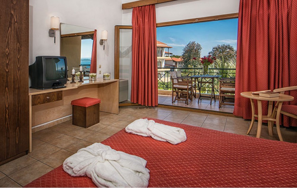 Superior Room-oko 30-35m2 sa pogledom na more, opremnjena je sa francuskim ili 2 singl ležaja I sofom. Namenjena je za 2-3 osobe.