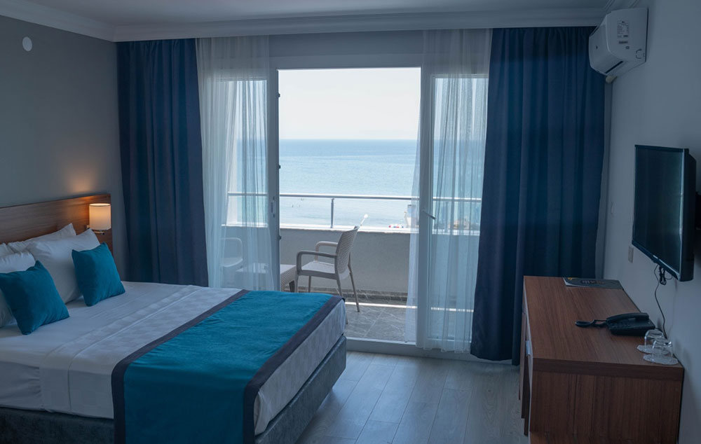 Položaj: hotel je udaljen 2 min hoda do plaže, u samom gradu, na oko 80 km od aerodroma u Bodrumu. Hotel je otvoren 2019 godine.